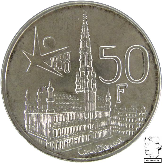 LaZooRo: Belgija 50 Francs 1958 UNC - srebro