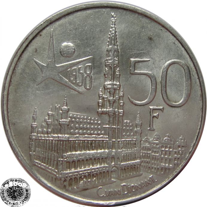 LaZooRo: Belgija 50 Francs 1958 XF/UNC - Srebro
