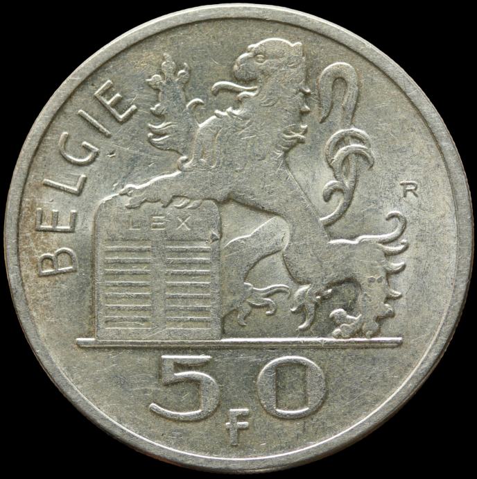 LaZooRo: Belgija 50 Francs Frank 1954 UNC - srebro