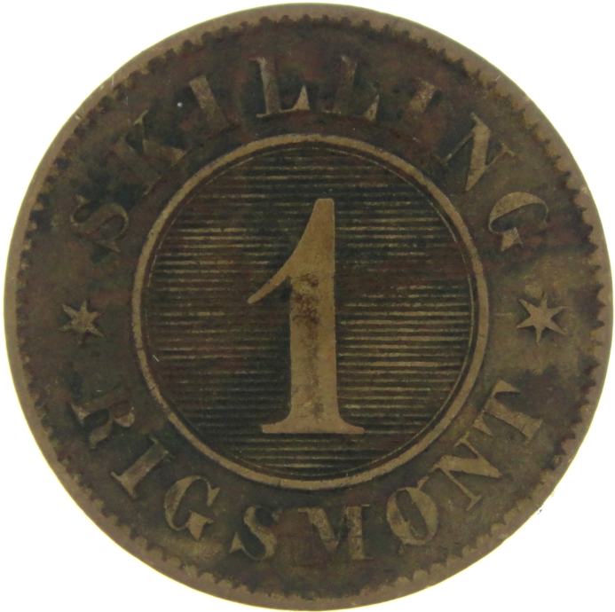 LaZooRo: Danska 1 Skilling 1856 VF / XF