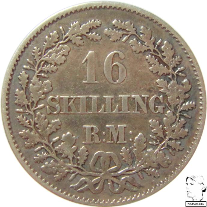 LaZooRo: Danska 16 Skilling 1856 VF / XF - Srebro
