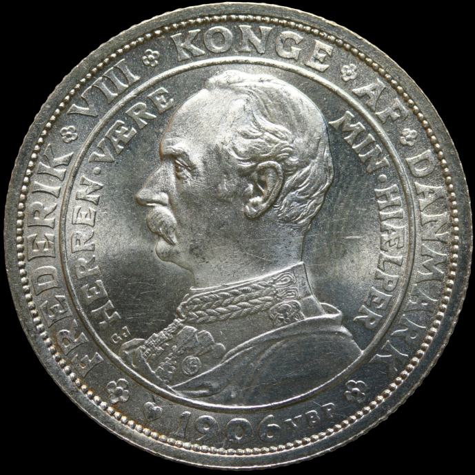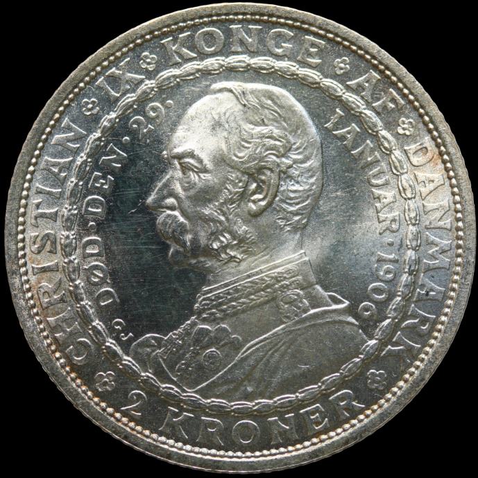 LaZooRo: Danska 2 Kroner 1906 UNC PROOF Smrt Kristijana IX. in prihod Friderika VIII. na prestol - Srebro