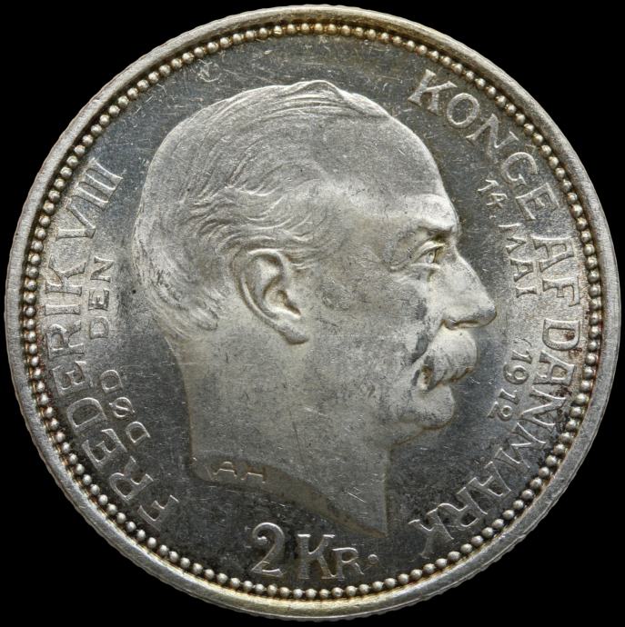 LaZooRo: Danska 2 Kroner 1912 UNC PROOF redek Smrt Friderika - srebro