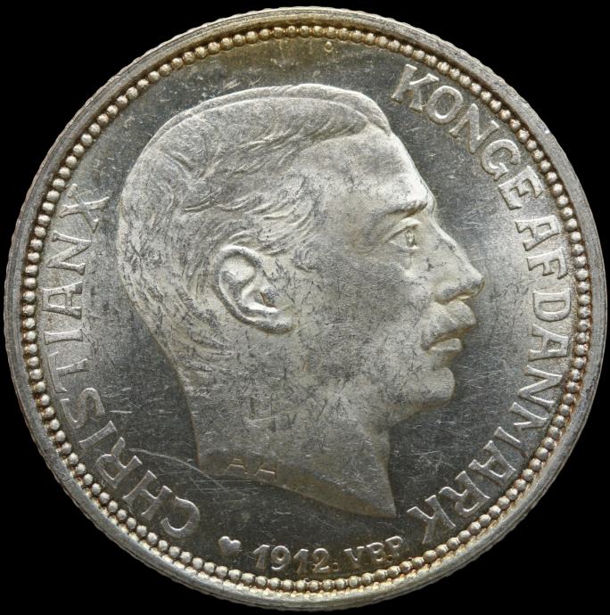 LaZooRo: Danska 2 Kroner 1912 UNC PROOF redek Smrt Friderika VIII. in prihod Kristijana X. na prestol - srebro
