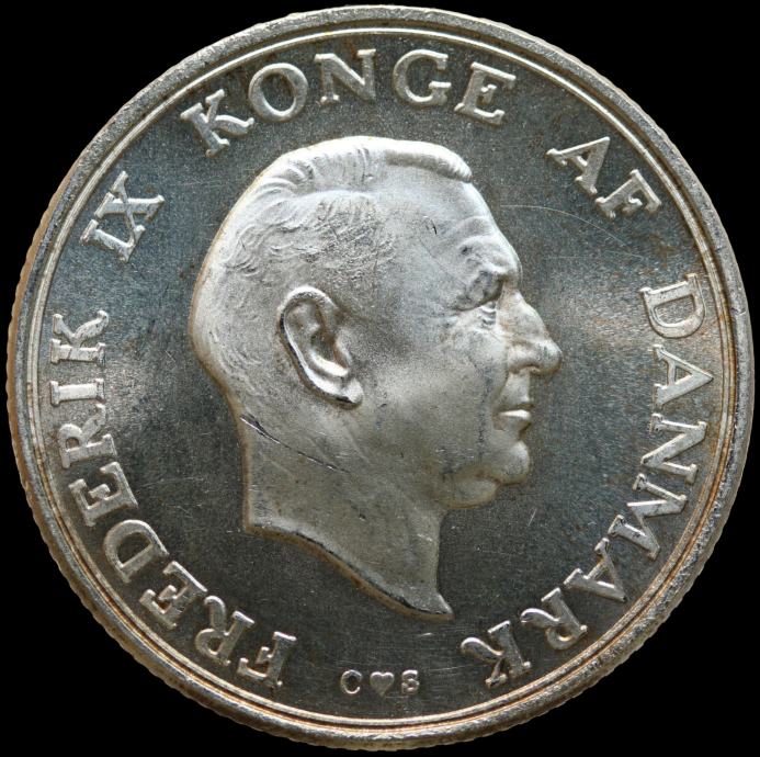 LaZooRo: Danska 2 Kroner 1958 UNC PROOF MATE 18. rojstni - srebro