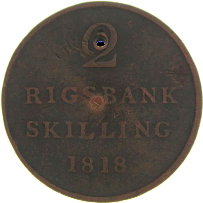 LaZooRo: Danska 2 Skilling 1818 VF manipuliran