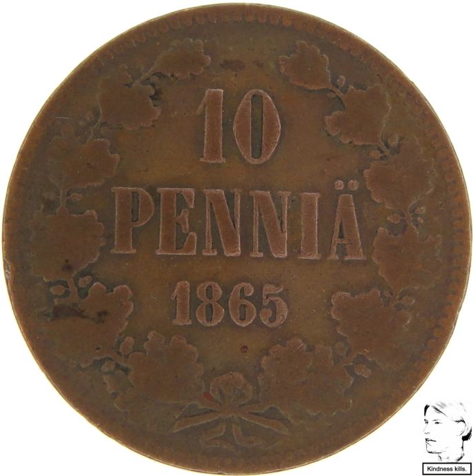 LaZooRo: Finska 10 Pennia 1865 VF