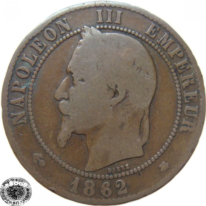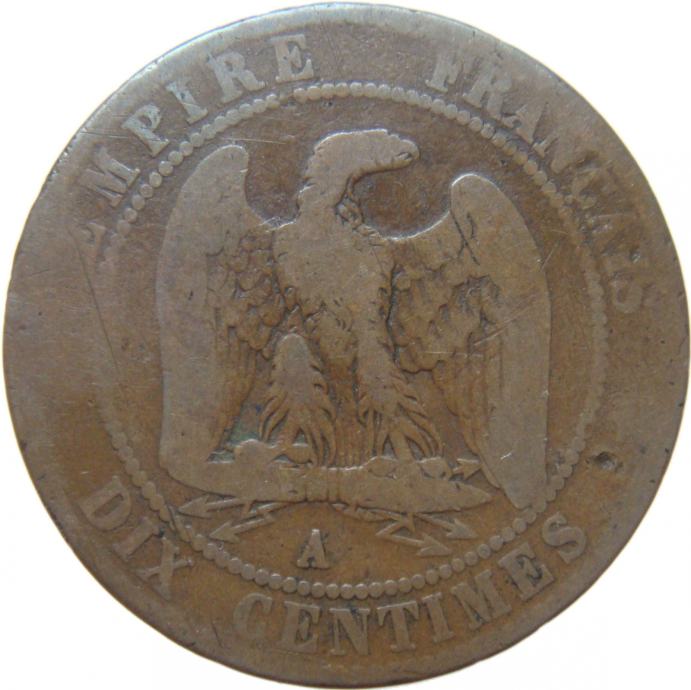LaZooRo: Francija 10 Centimes 1862 A F/VF