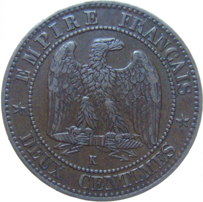 LaZooRo: Francija 2 Centimes 1862 K XF/UNC