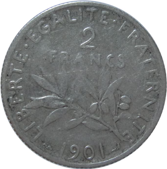 LaZooRo: Francija 2 Francs 1901 VF - Srebro