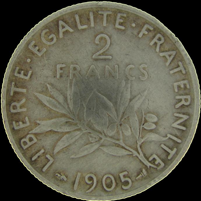 LaZooRo: Francija 2 Francs 1905 VF / XF - srebro