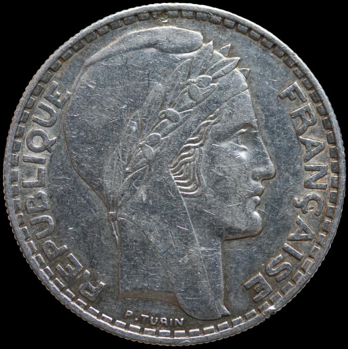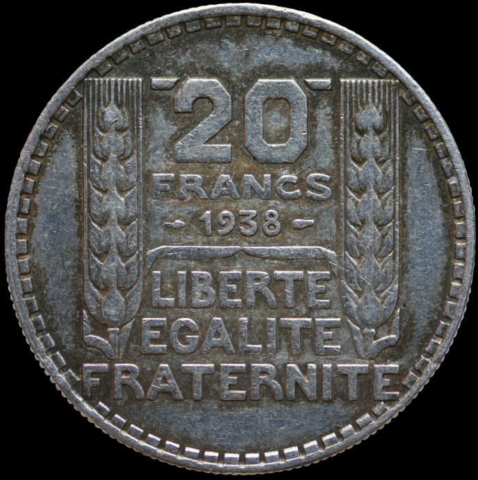 LaZooRo: Francija 20 Francs 1938 XF - srebro