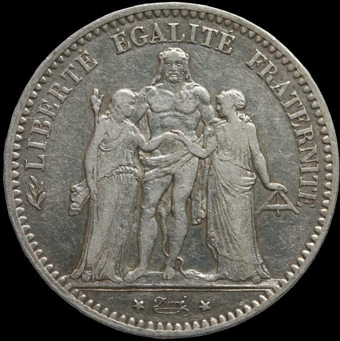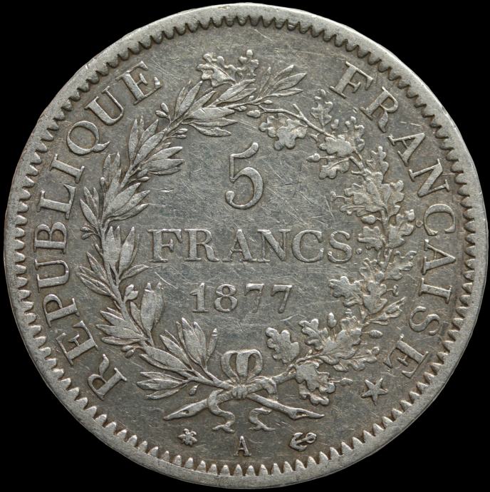 LaZooRo: Francija 5 Francs 1877 A VF / XF - Srebro