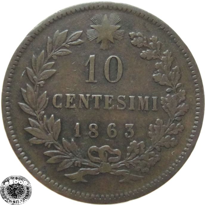 LaZooRo: Italija 10 Centesimi 1863 VF a