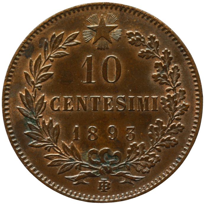 LaZooRo: Italija 10 Centesimi 1893 BI UNC