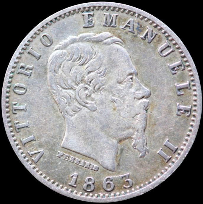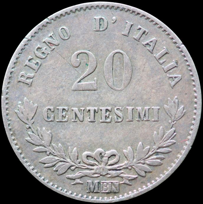 LaZooRo: Italija 20 Centesimi 1863 M XF - srebro