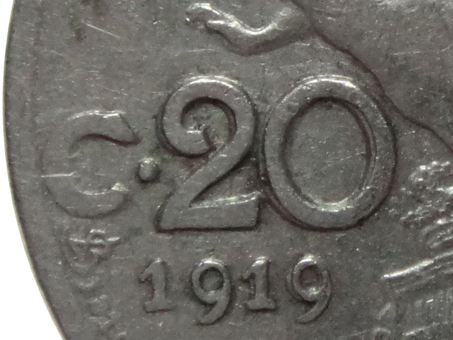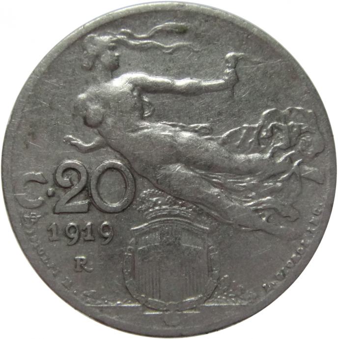 LaZooRo: Italija 20 Centesimi 1919 R VF/XF podvojenost