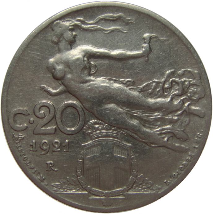 LaZooRo: Italija 20 Centesimi 1921 R XF