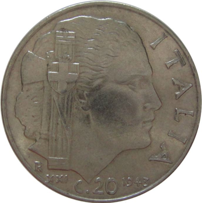 LaZooRo: Italija 20 Centesimi 1943 XF / UNC