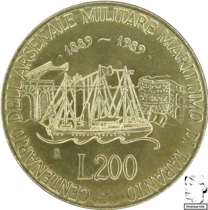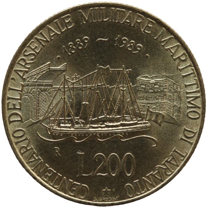LaZooRo: Italija 200 Lire 1989 XF / UNC Taranto Naval Yards