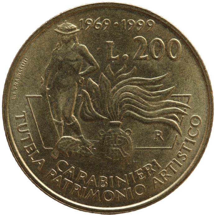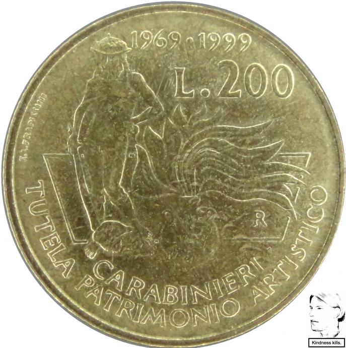 LaZooRo: Italija 200 Lire 1999 XF / UNC Zaščitniki umetniške dediščine