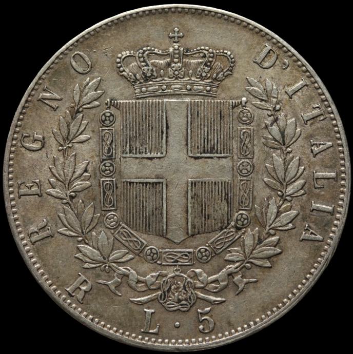 LaZooRo: Italija 5 Lire 1876 R XF/UNC - Srebro