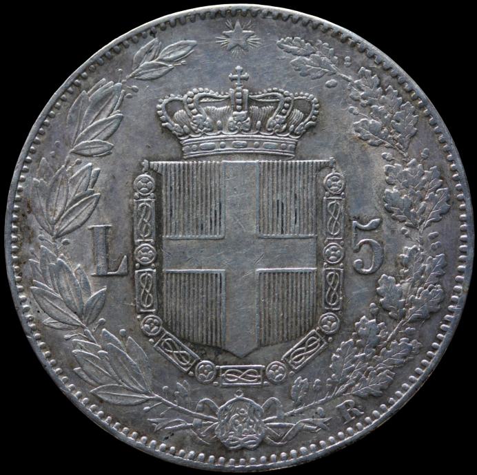 LaZooRo: Italija 5 Lire 1879 R XF/UNC mavrica - Srebro