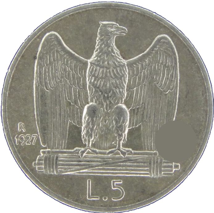 LaZooRo: Italija 5 Lire 1927 R UNC ** - srebro