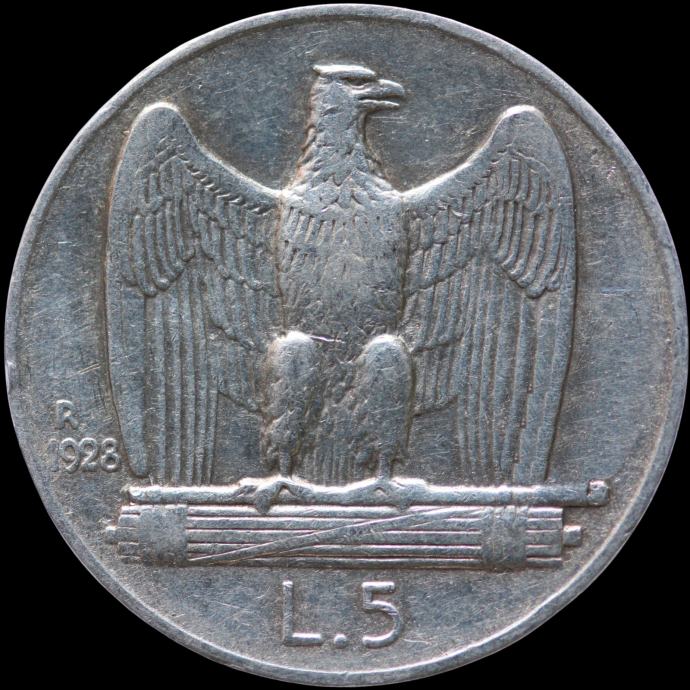 LaZooRo: Italija 5 Lire 1928 R VF / XF ** - srebro