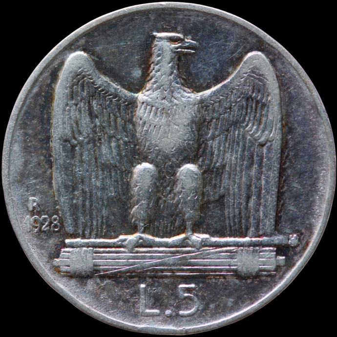 LaZooRo: Italija 5 Lire 1928 R VF / XF * - srebro