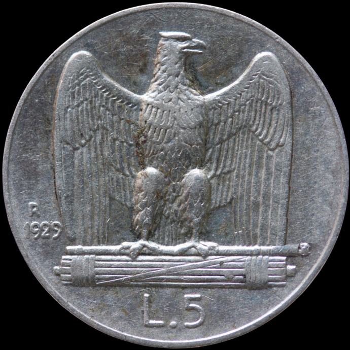 LaZooRo: Italija 5 Lire 1929 R XF / UNC ** - srebro