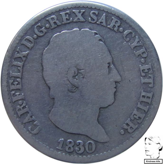 LaZooRo: Italija 50 Centesimi 1830 P F R2 redkejši - Srebro