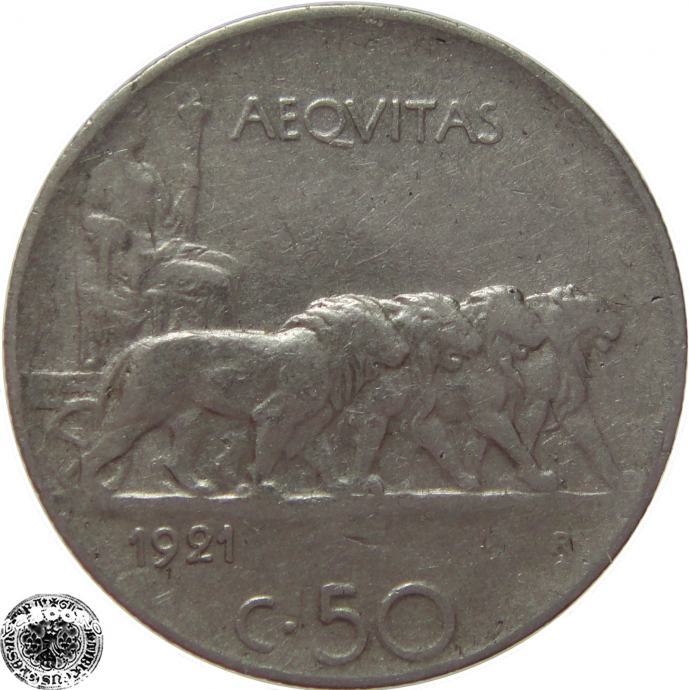 LaZooRo: Italija 50 Centesimi 1921 R VF nazobčan rob a