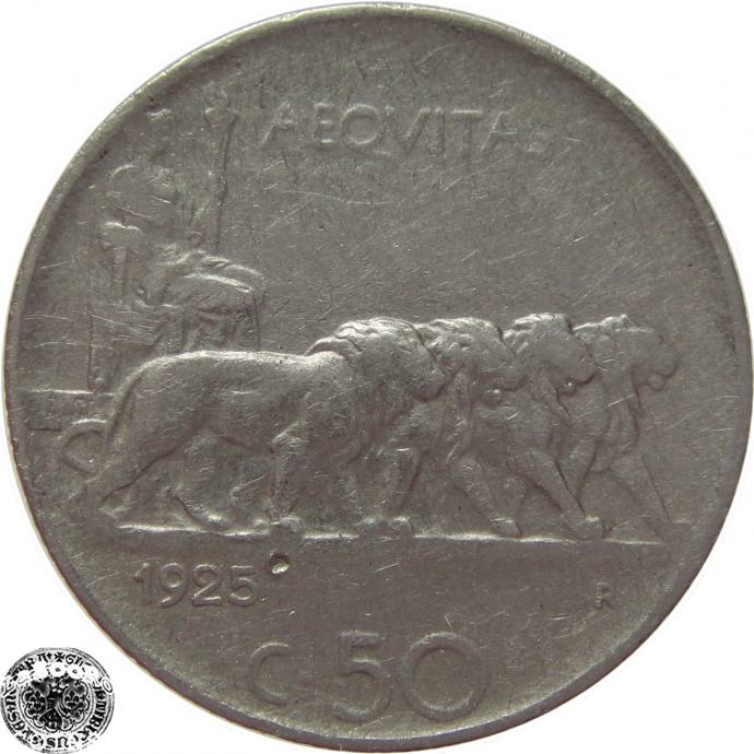LaZooRo: Italija 50 Centesimi 1925 R VF nazobčan rob b