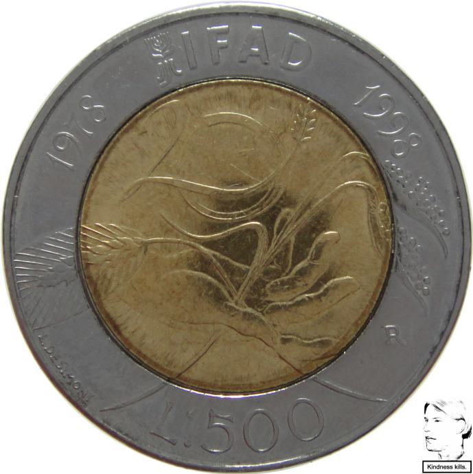 LaZooRo: Italija 500 lir 1998 XF / UNC F.A.O.