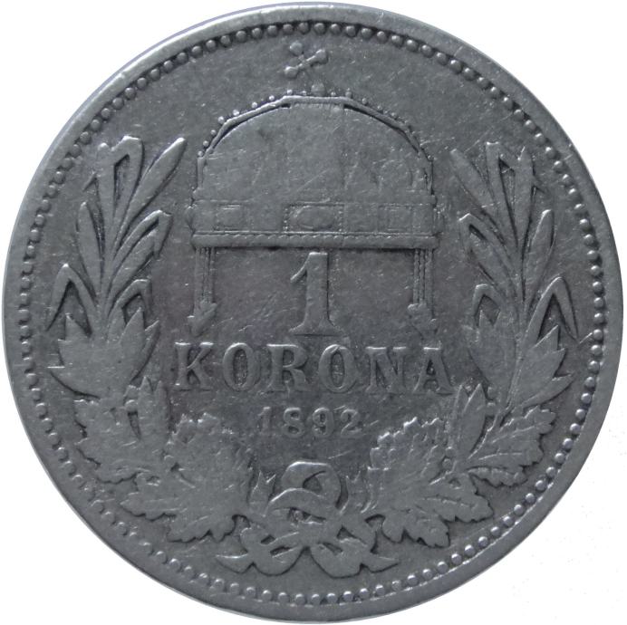 LaZooRo: Madžarska 1 Korona 1892 VF/XF redek - Srebro