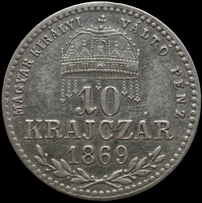 LaZooRo: Madžarska 10 Krajczar 1869 KB XF - Srebro