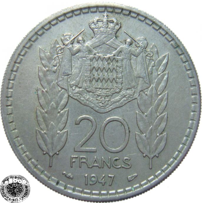 LaZooRo: Monako 20 Francs 1947 XF/UNC