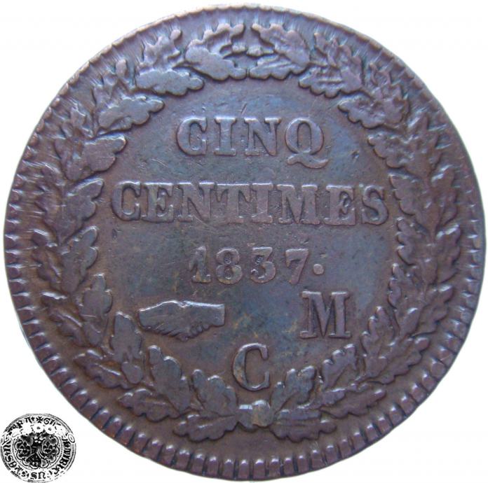 LaZooRo: Monako 5 Centimes 1837 VF/XF