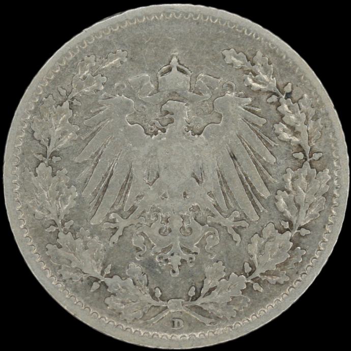 LaZooRo: Nemčija 1/2 Mark 1906 D VF / XF - srebro