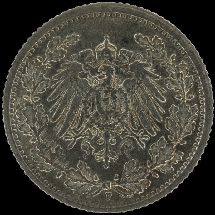 LaZooRo: Nemčija 1/2 Mark 1909 F prek F UNC – srebro