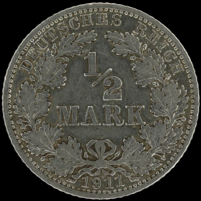 LaZooRo: Nemčija 1/2 Mark 1911 G UNC – srebro
