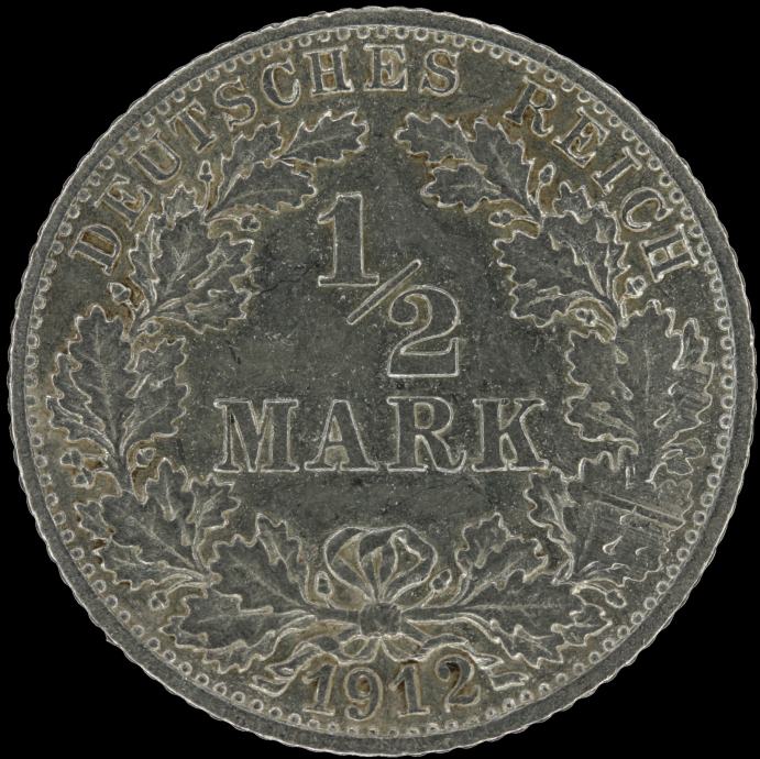 LaZooRo: Nemčija 1/2 Mark 1912 F XF / UNC - srebro
