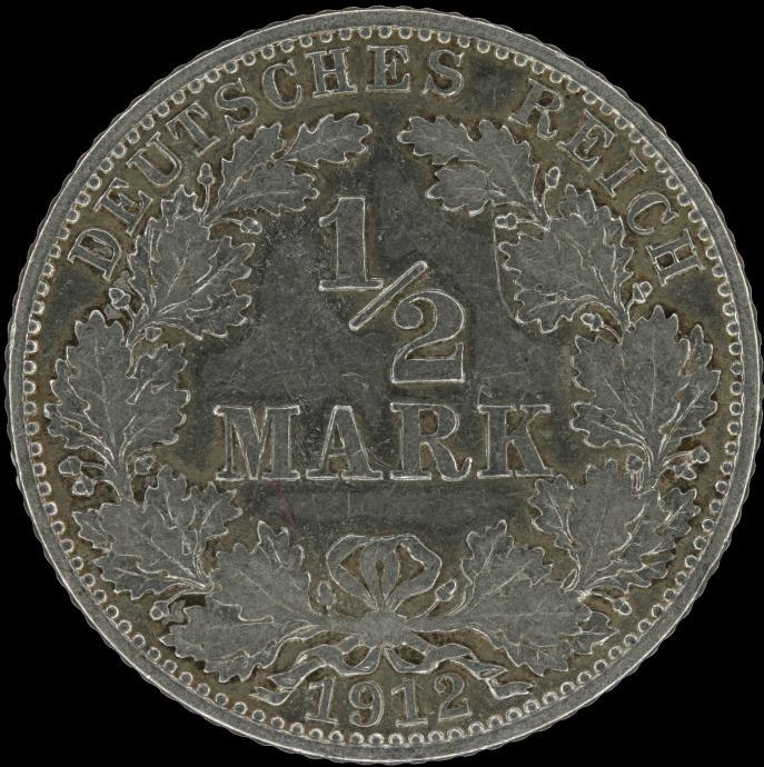 LaZooRo: Nemčija 1/2 Mark 1912 J XF / UNC - srebro