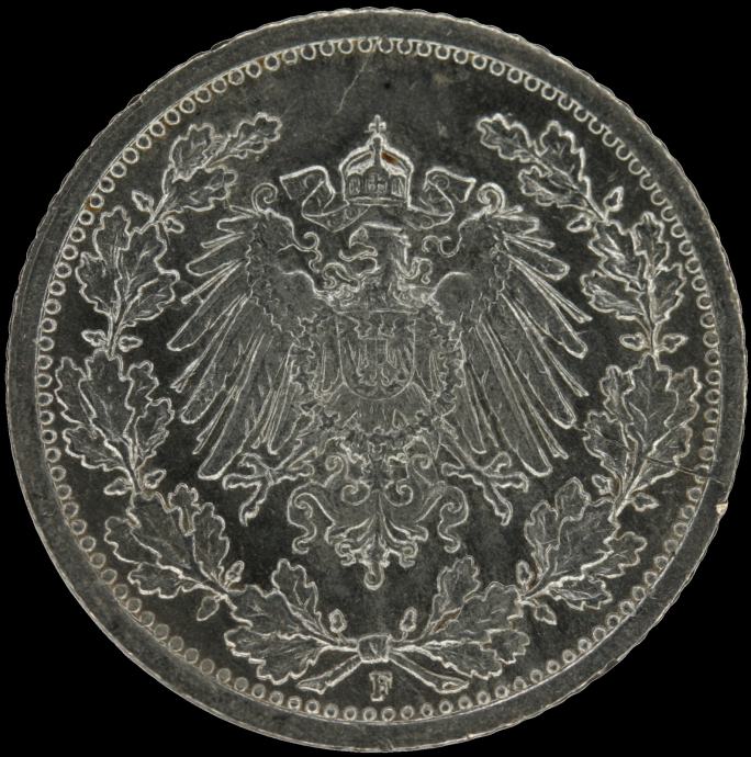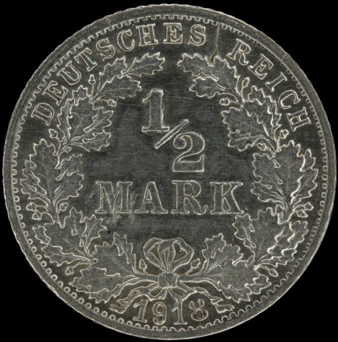 LaZooRo: Nemčija 1/2 Mark 1918 F UNC razsekana 8 počena matrica - srebro