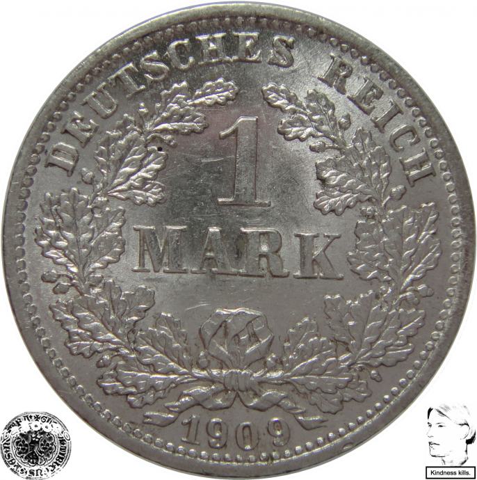 LaZooRo: Nemčija 1 Mark 1909 D UNC - Srebro