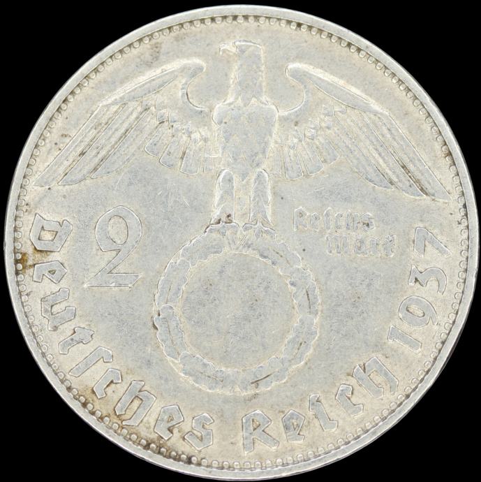 LaZooRo: Nemčija 2 Mark 1937 D XF / UNC - srebro