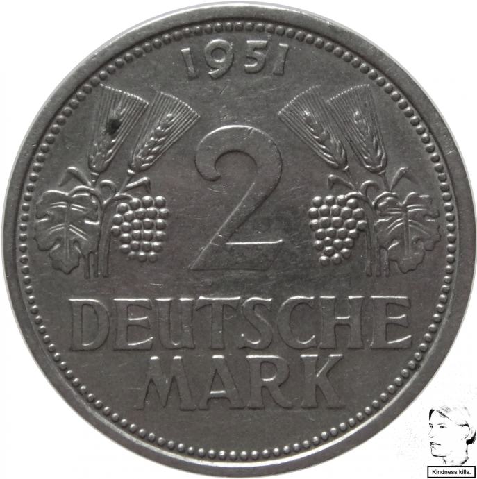 LaZooRo: Nemčija 2 Mark 1951 D UNC