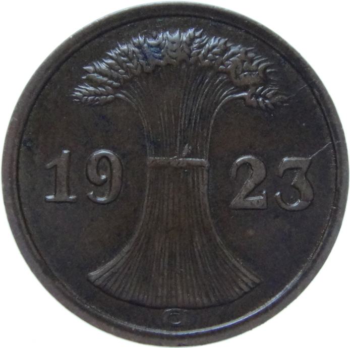 LaZooRo: Nemčija 2 Pfennig 1923 G XF napake podvojenost