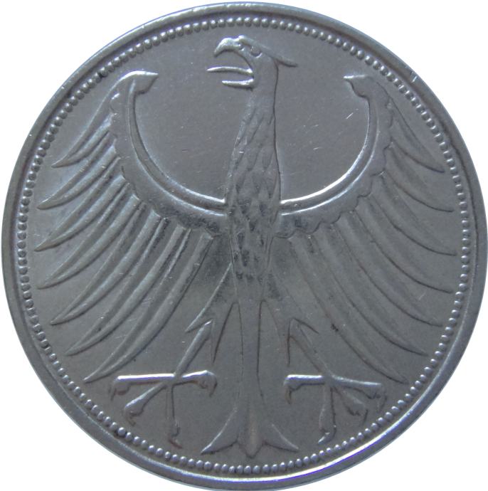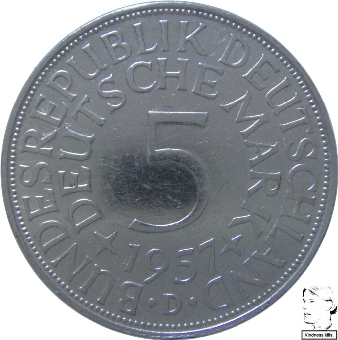 LaZooRo: Nemčija 5 MARK 1957 D PROOF zelo redek - Srebro